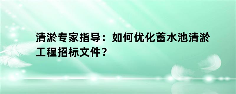 清淤专家指导:如何优化蓄水池清淤工程招标文件?