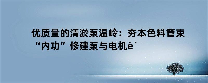 优质量的清淤泵温岭:夯本色料管束“内功”修建泵与电机财富成长新上风
