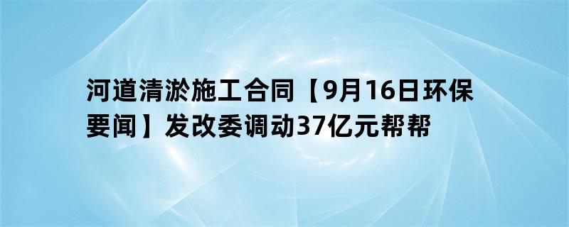 河道清淤施工合同【9月16日环保要闻】发改委调动37亿元帮帮对畜禽粪污资源化运用32亿云南临沧市河流处置工程沟渠清淤方案PPP项目花落中电修