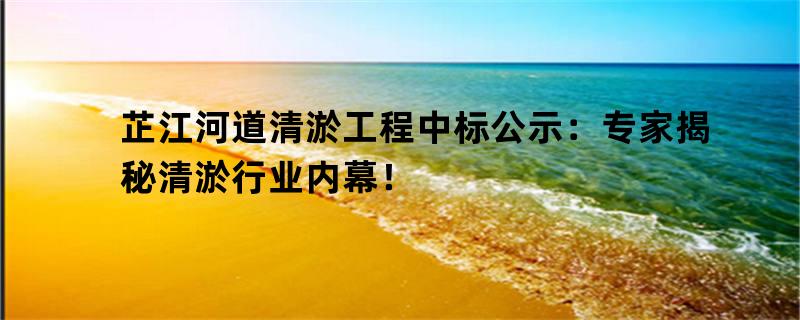 芷江河道清淤工程中标公示:专家揭秘清淤行业内幕!