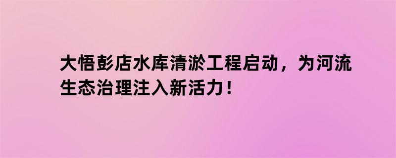大悟彭店水库清淤工程启动,为河流生态治理注入新活力!