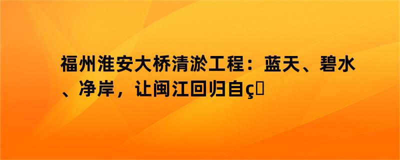 福州淮安大桥清淤工程:蓝天、碧水、净岸,让闽江回归自然
