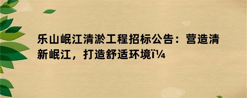 乐山岷江清淤工程招标公告:营造清新岷江,打造舒适环境!
