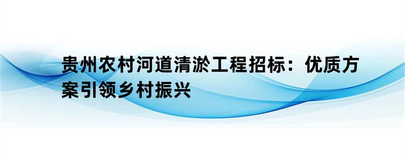 贵州农村河道清淤工程招标:优质方案引领乡村振兴