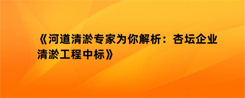 《河道清淤专家为你解析:杏坛企业清淤工程中标》