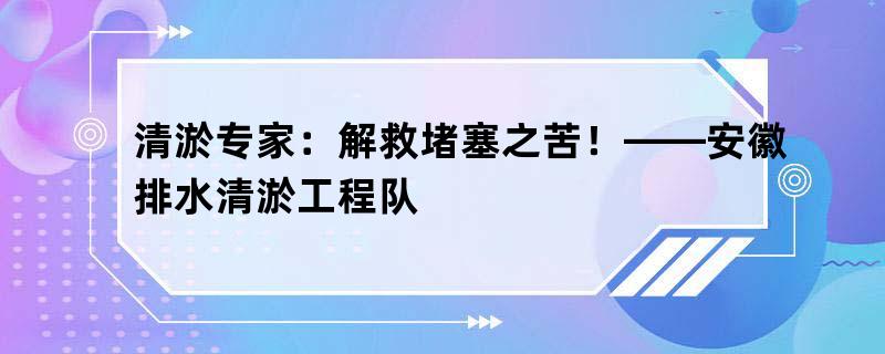 清淤专家:解救堵塞之苦!——安徽排水清淤工程队