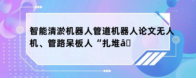 智能清淤机器人管道机器人论文无人机、管路呆板人“扎堆”都会拘束效劳焦点周扫码答题还能赢奖品