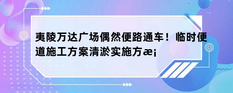 夷陵万达广场偶然便路通车!临时便道施工方案清淤实施方案