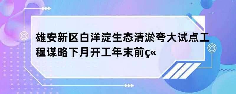 雄安新区白洋淀生态清淤夸大试点工程谋略下月开工年末前竣工