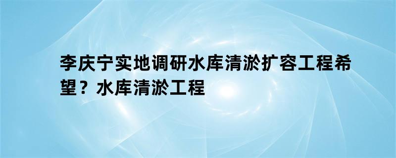 李庆宁实地调研水库清淤扩容工程希望?水库清淤工程