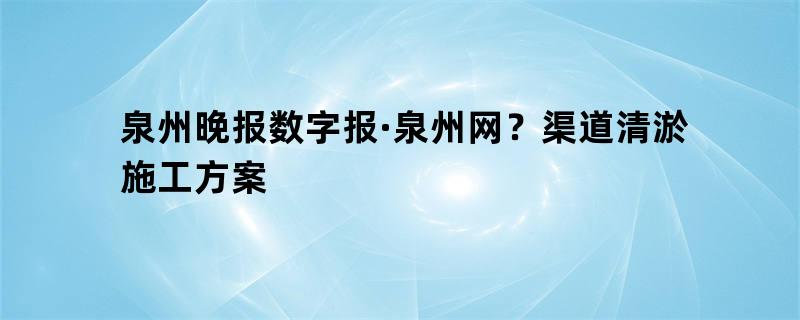 泉州晚报数字报·泉州网?渠道清淤施工方案