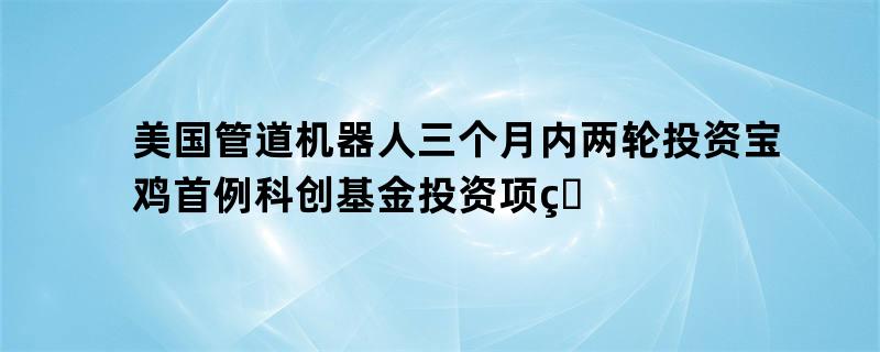 美国管道机器人三个月内两轮投资宝鸡首例科创基金投资项目缘何受青睐