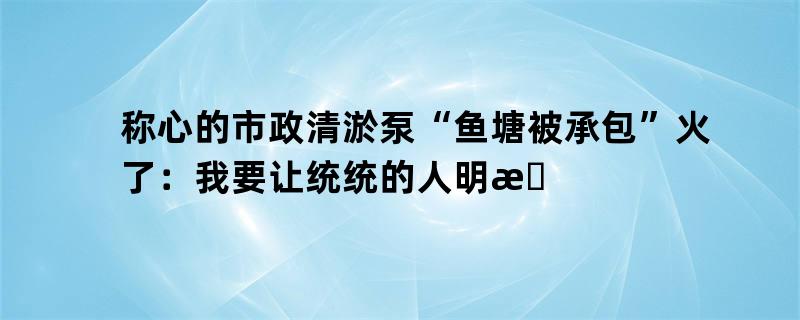 称心的市政清淤泵“鱼塘被承包”火了:我要让统统的人明晰这个鱼塘被你承包了吸泥机