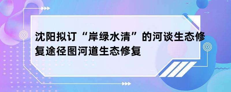 沈阳拟订“岸绿水清”的河谈生态修复途径图河道生态修复