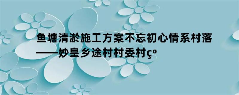 鱼塘清淤施工方案不忘初心情系村落——妙皇乡途村村委村级团体经济发扬纪实