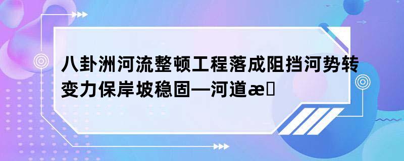 八卦洲河流整顿工程落成阻挡河势转变力保岸坡稳固—河道整治设计规范