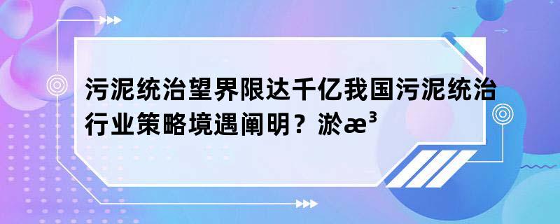污泥统治望界限达千亿我国污泥统治行业策略境遇阐明?淤泥清理后如何处置