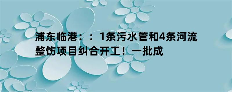 原题目:《浦东临港::1条污水管和4条河流整饬项目凑集开工!一批成绩图争先看》