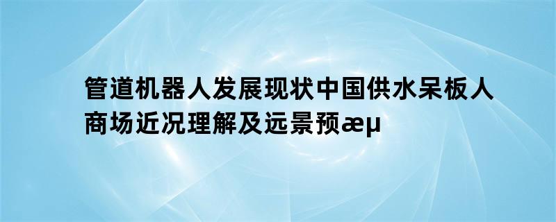 管道机器人发展现状中国供水呆板人商场近况理解及远景预测讲演管道机器人背景