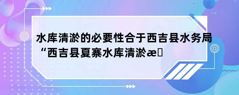 水库清淤的必要性合于西吉县水务局“西吉县夏寨水库清淤扩容工程”境况影响评判筑立实质的蜕变公示
