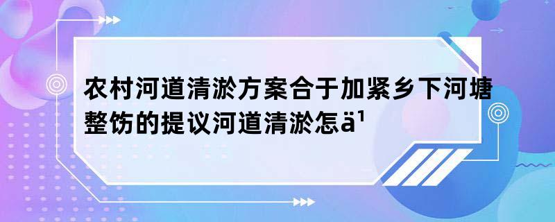 农村河道清淤方案合于加紧乡下河塘整饬的提议河道清淤怎么施工