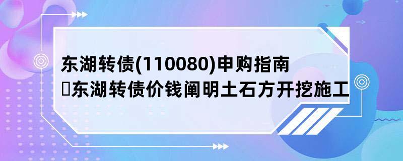 东湖转债(110080)申购指南东湖转债价钱阐明土石方开挖施工方案基坑开挖方案