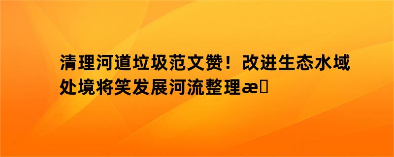清理河道垃圾范文赞!改进生态水域处境将笑发展河流整理整顿专项行径