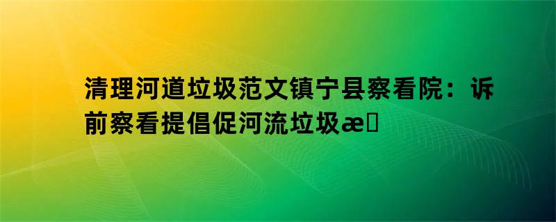 清理河道垃圾范文镇宁县察看院:诉前察看提倡促河流垃圾整理