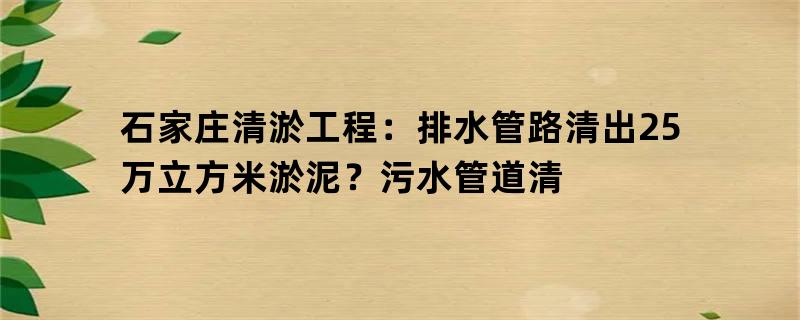石家庄清淤工程:排水管路清出25万立方米淤泥?污水管道清淤泥