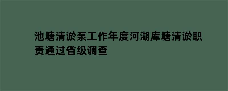 池塘清淤泵工作年度河湖库塘清淤职责通过省级调查