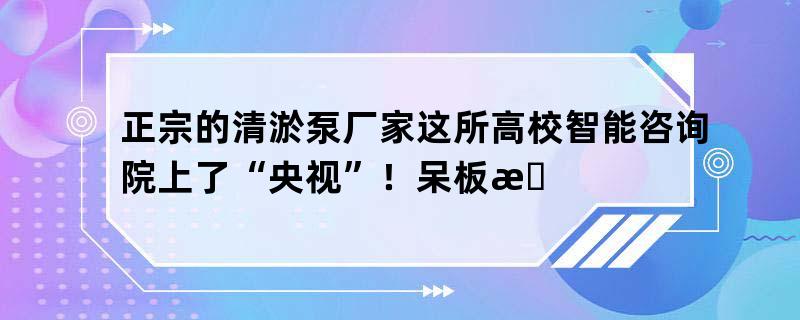 正宗的清淤泵厂家这所高校智能咨询院上了“央视”!呆板手臂机动“人机”对打乒乓球—智能机械手臂