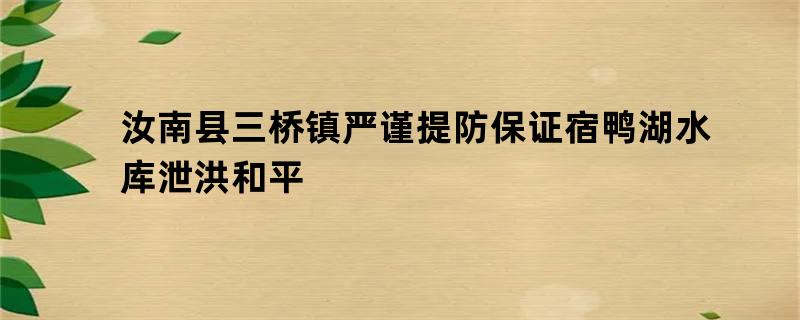 汝南县三桥镇严谨提防保证宿鸭湖水库泄洪和平