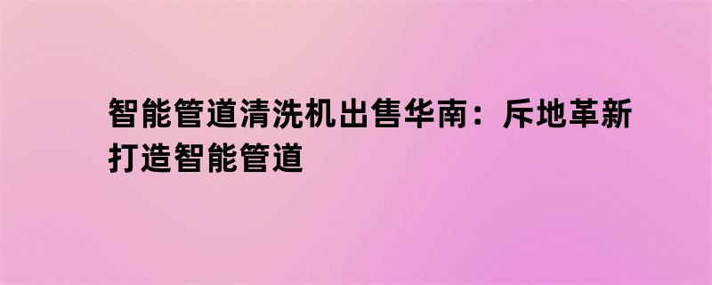 智能管道清洗机出售华南:斥地革新打造智能管道