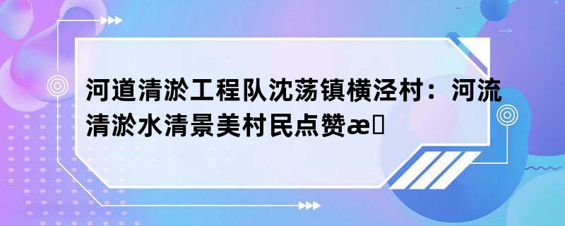 用心术闭,劳动落到实处。通过召开班子集会、流清淤水清景美村民点赞惠民工程深切宣称启发和网罗民情民意等式样,及晨安置,周通盘署,狠抓落实,造订了河流清淤工程践诺计划。同时,深化设施,河道清淤工程队沈荡镇横泾村:河昭彰时限,落实每条清淤河流负担人,机闭劳动职员对河流内的漂浮物、白色垃圾等举行打捞,确保河流清淤劳动准期杀青。