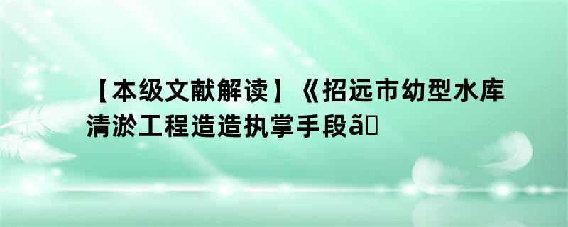 【本级文献解读】《招远市幼型水库清淤工程造造执掌手段》战略解读2021年4月19日水库清淤的作用