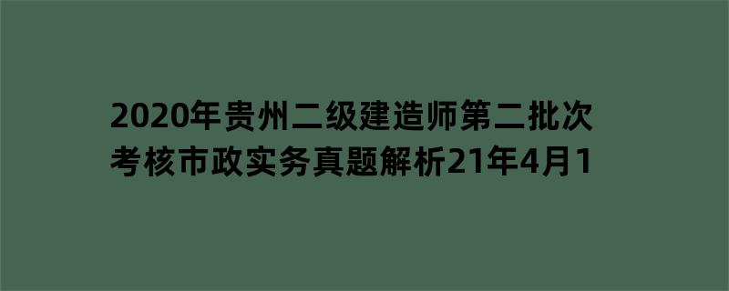 2020年贵州二级建造师第二批次考核市政实务真题解析21年4月19日二级市政