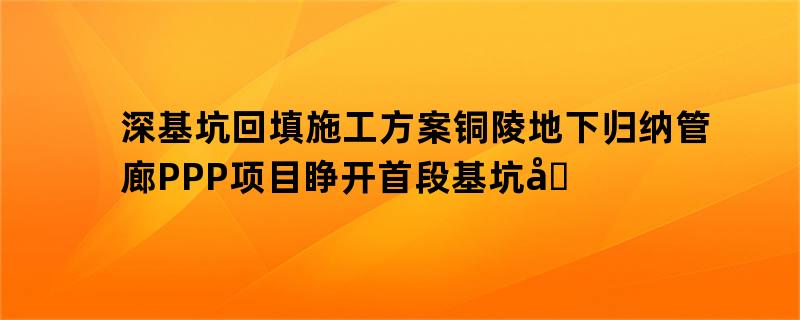 深基坑回填施工方案铜陵地下归纳管廊PPP项目睁开首段基坑回填施工土石方开挖方案