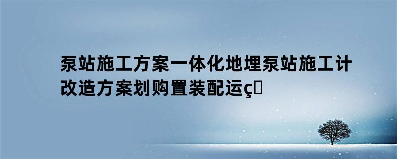泵站施工方案一体化地埋泵站施工计改造方案划购置装配运用前的极少题目