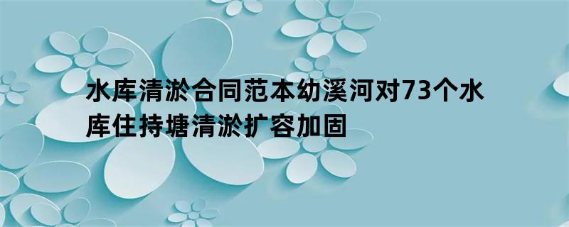 水库清淤合同范本幼溪河对73个水库住持塘清淤扩容加固