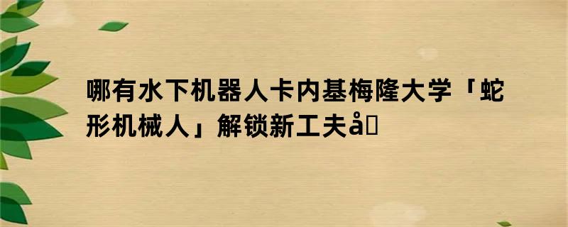 哪有水下机器人卡内基梅隆大学「蛇形机械人」解锁新工夫可用于水下检讨船舶和本原方法