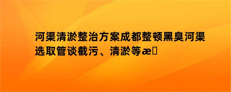 河渠清淤整治方案成都整顿黑臭河渠选取管谈截污、清淤等方法