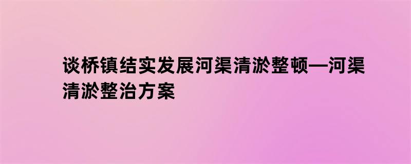 谈桥镇结实发展河渠清淤整顿—河渠清淤整治方案