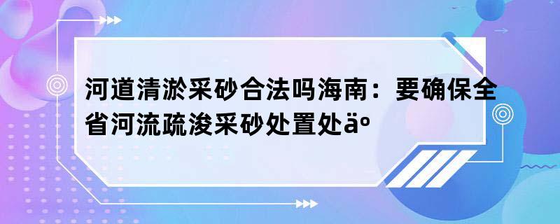 河道清淤采砂合法吗海南:要确保全省河流疏浚采砂处置处事楷模有序