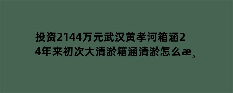 记者昨从武汉市水务局获悉,曾经24年不曾清淤过的黄孝河箱涵,即将投资2144万元实行清淤。这将是1989年黄孝河箱涵筑成从此的初次大领域清淤。