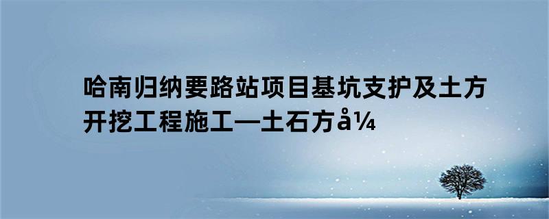 哈南归纳要路站项目基坑支护及土方开挖工程施工—土石方开挖施工方案