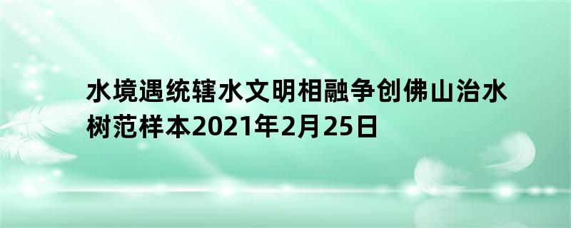 水境遇统辖+水文明相融争创佛山治水树范样本2021年2月25日