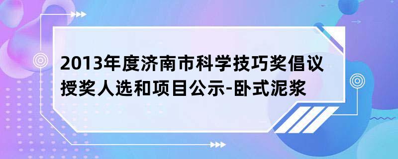 2013年度济南市科学技巧奖倡议授奖人选和项目公示-卧式泥浆泵清淤