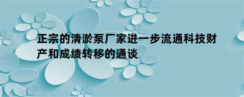 正宗的清淤泵厂家进一步流通科技财产和成绩转移的通谈