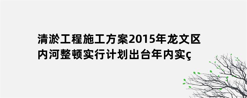 清淤工程施工方案2015年龙文区内河整顿实行计划出台年内实现清淤实施方案