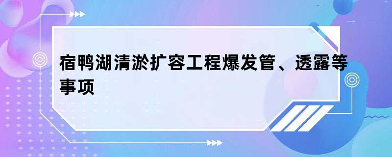 宿鸭湖清淤扩容工程爆发管、透露等事项
